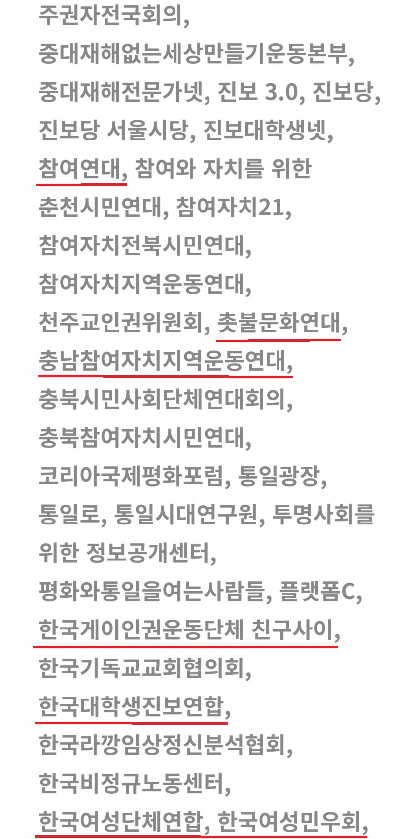 참여연대, 민주언론시민연합 (민언련), 촛불시위 단체들