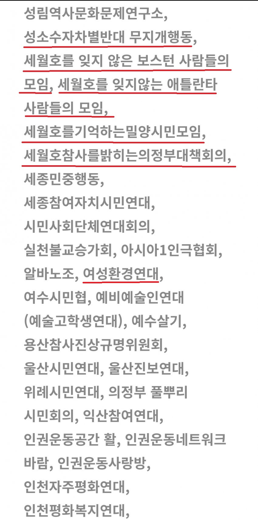 4.16 세월호 단체들, 페미&성소수자&여성 단체들,