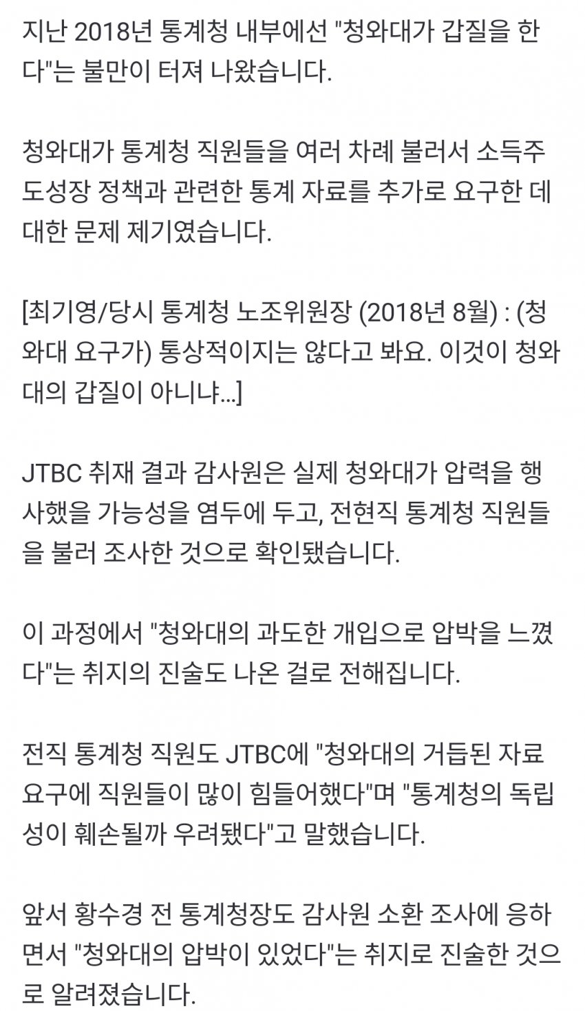 통계청 직원 ' 청와대 압박 ' 진술 나옴 ㅋㅋㅋㅋㅋ - [단독] 감사원, 통계청 직원들 조사…"청와대, 과하게 자료 요구"'