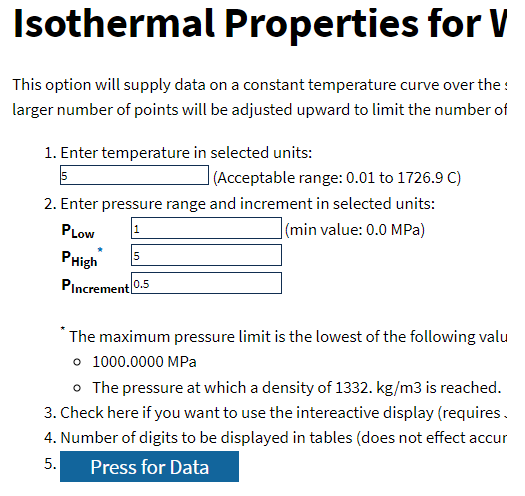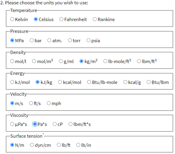 3-5. Isothermal properties 선택시 확인하고자 하는 물성정보 관련해서 온도와 압력정보