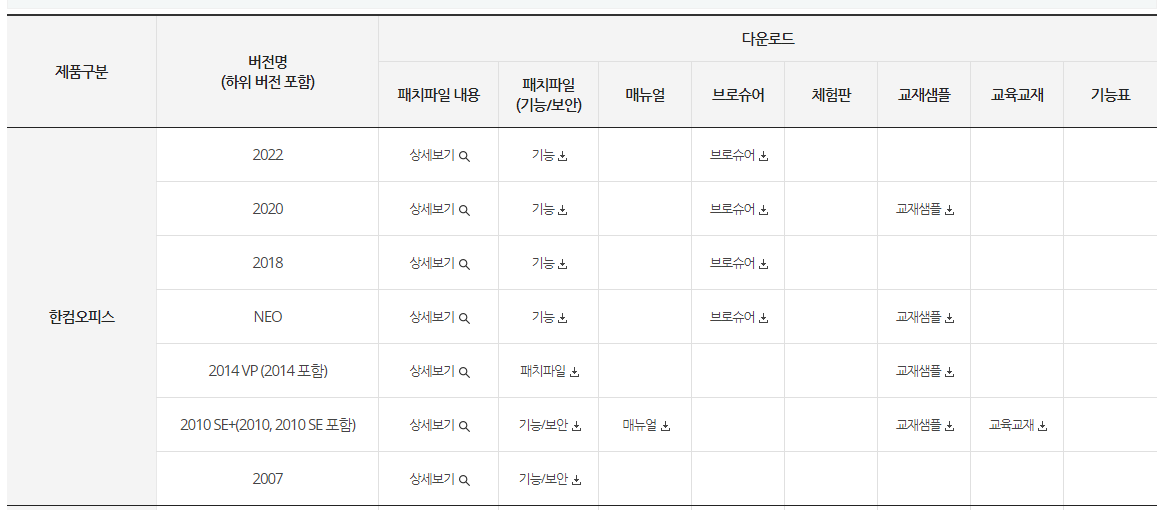 https://www.hancom.com/cs_center/csDownload.do 글로벌 소프트웨어의 리더, 한글과컴퓨터 한컴오피스 2022 뷰어 (Windows 용) (통합뷰어) --> 한글, 한셀, 한쇼 뿐만 아니라 MS 워드, 파워포인트 , 엑셀 문서를 불러올 수 있는 한컴오피스 통합 뷰어입니다. - 운영체제 : Windows 7/8/10 - 웹브라우 www.hancom.com 무료 다운로드 전체 현황 제품별 패치, 체험판, 매뉴얼 외 기타 자료를 한눈에 확인 하실 수 있습니다.